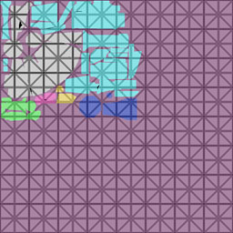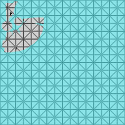 | Почему нужно использовать примерно такую вспомогательную текстуру (или подобную ей)? При создании текстурной развертки Вы сможете наблюдать данную текстуру на поверхности самой модели. Размер и форма узора из треугольников на текстуре позволят Вам задавать для проецируемых на развертку граней примерно сопоставимые размеры - т.е. избежать излишнего уменьшения или увеличения отдельных элементов. Отслеживать этот процесс позволяет именно размер и форма получаемого узора на поверхности модели. | ||||||